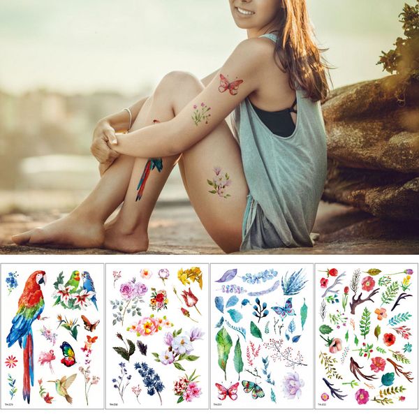 Tiny Watercolor Flower Parrot Design Temporary Tattoo Sticker For Male Female Body Art Waterproof Removable Fashion Transfer Fake Tattoo Diy Temporary