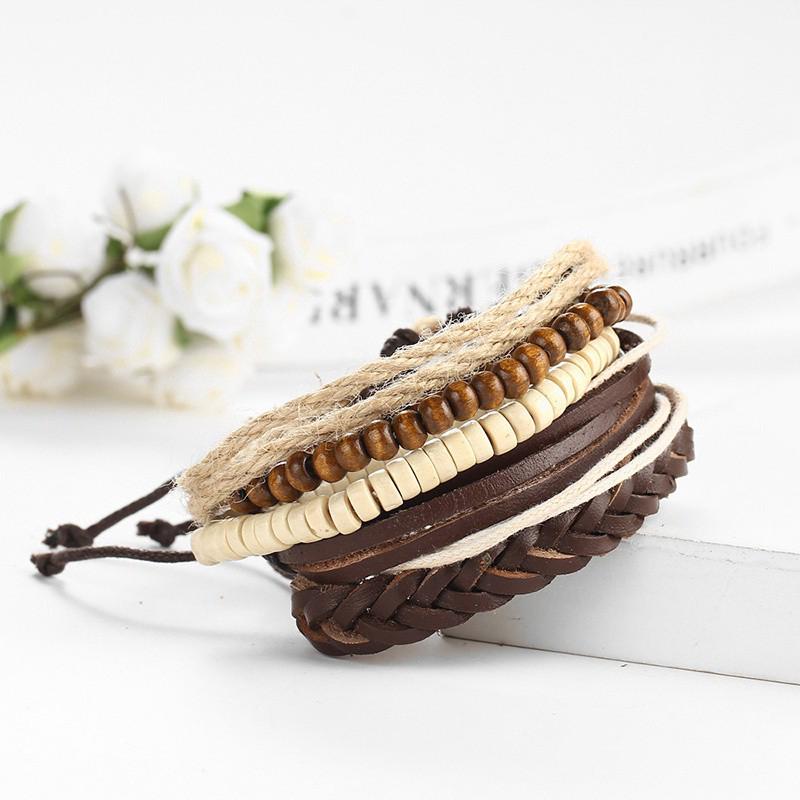 Adjustable Wooden Beads Knitted Diy Leather Bracelet