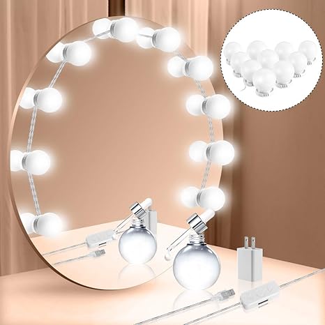 Waneway Vanity Lights For Mirror Diy Hollywood Lighted Makeup Vanity Mirror Dimmable Lights Stick On Led Mirror Light Kit For Vanity Set Plug In