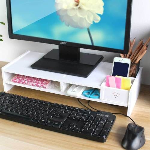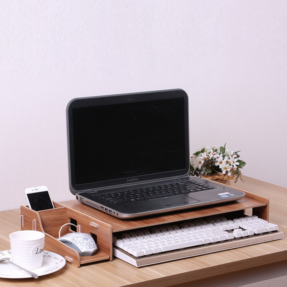Diy Office Storage Wooden Rack Desktop Monitor Riser Pc Laptop Stand Organizer