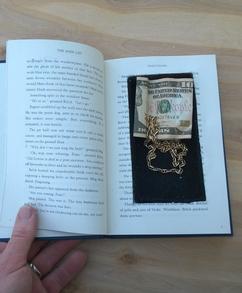 A hollowed out book is a clever place to hide valuables. Its easy to make yours one of a kind with a personalized book choice although you probably want to pick something beautiful rather than a great read. A hollowed out hardback book can turn into a safe that you can keep on the bookshelf in plain sight.